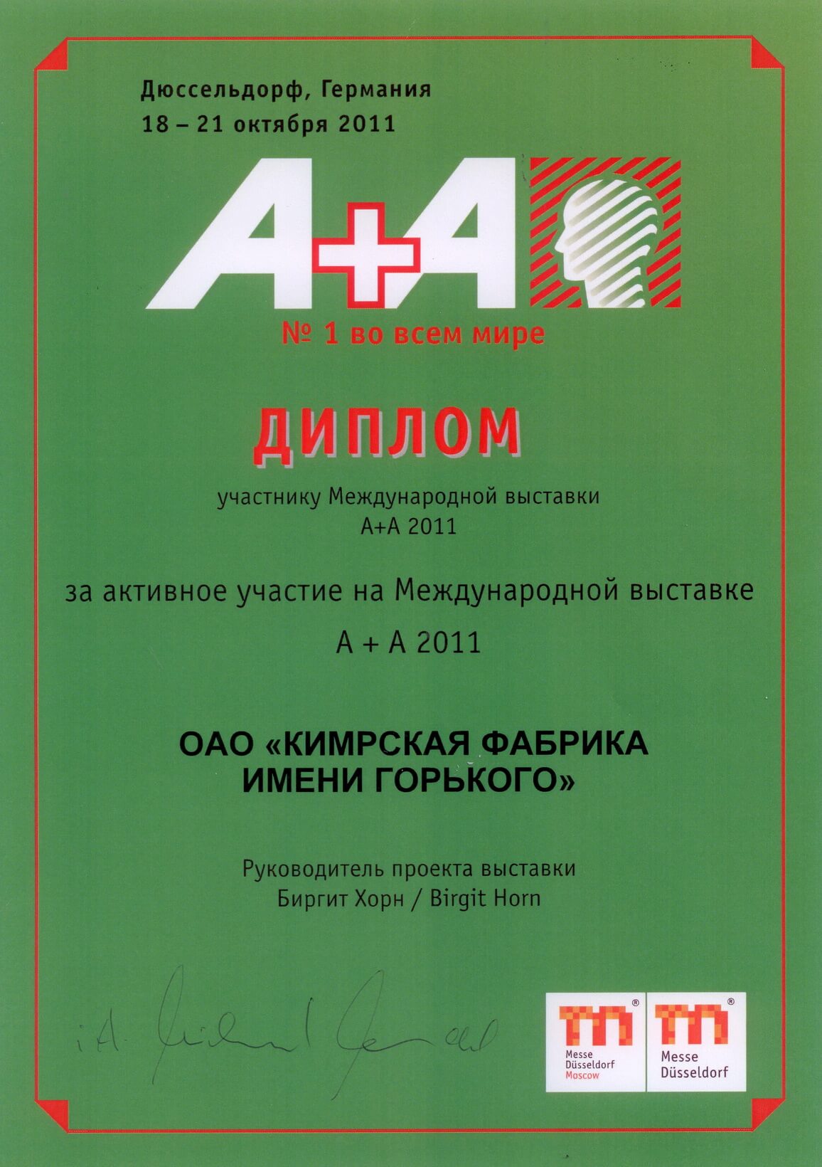 Диплом участнику Международной выставки А+А 2011