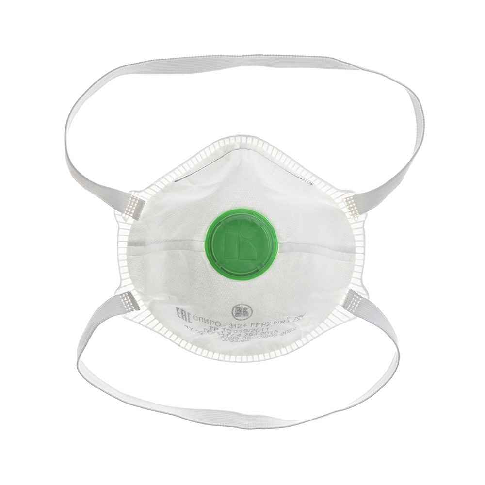 Формованная фильтрующая полумаска с носовым зажимом и саморегулируемыми лентами оголовья для защиты от аэрозолей до 12 ПДК